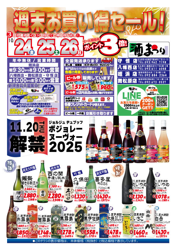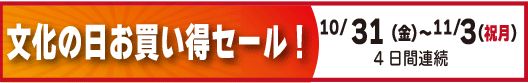 10月24日(金)~10月26日(日)まで3日間ポイント3倍セールを行います。是非、ご来店ください! 10月31日(金)~11月3日(祝月)まで4日間ポイント3倍セールを行います。是非、ご来店ください!